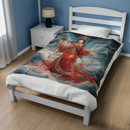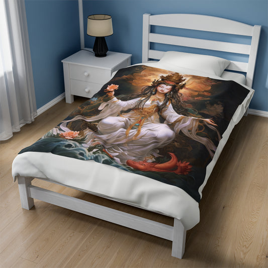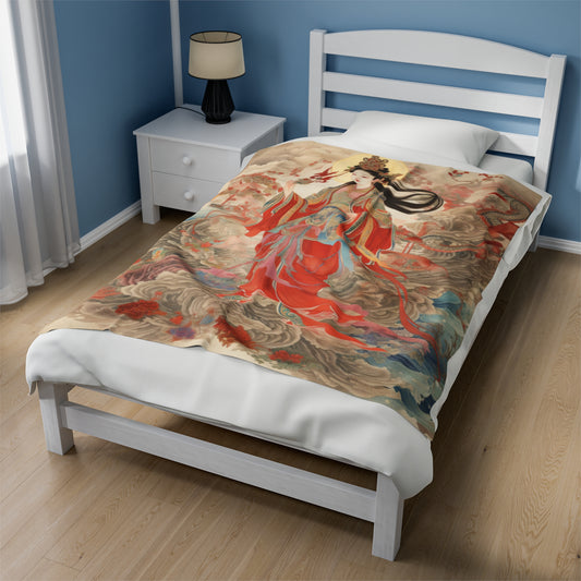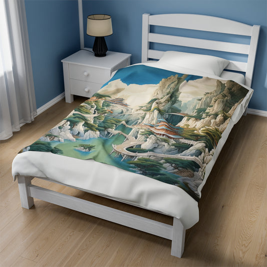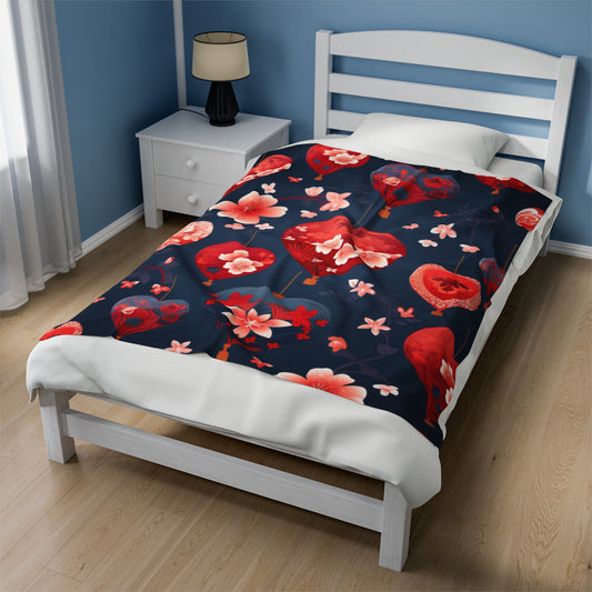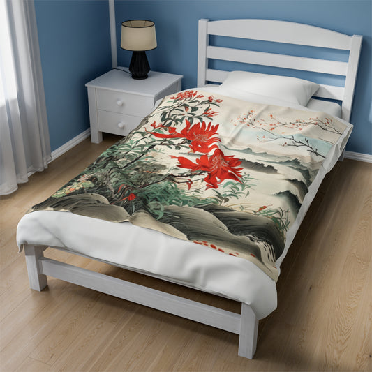 Serene Blossoms Velveteen Plush Blanket – Cozy Art Blanket for Home Decor and Gift Giving