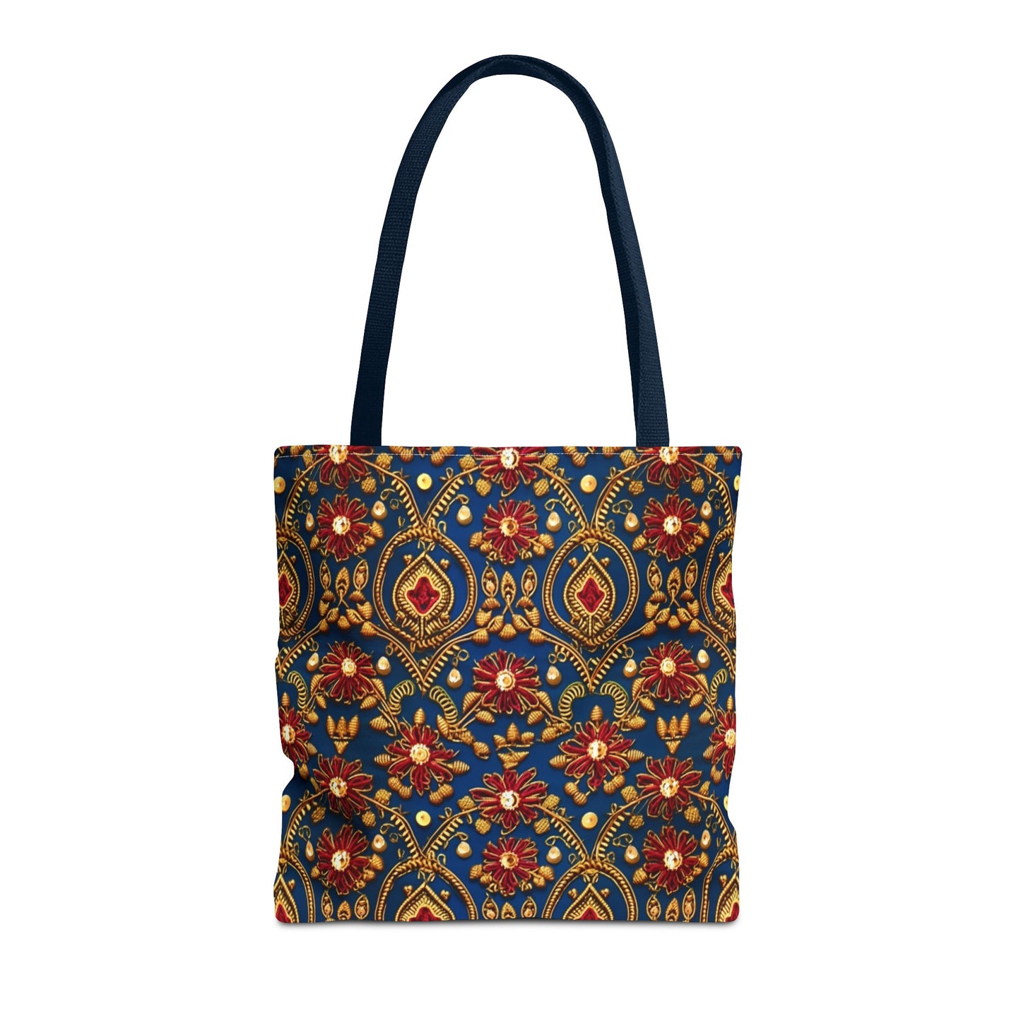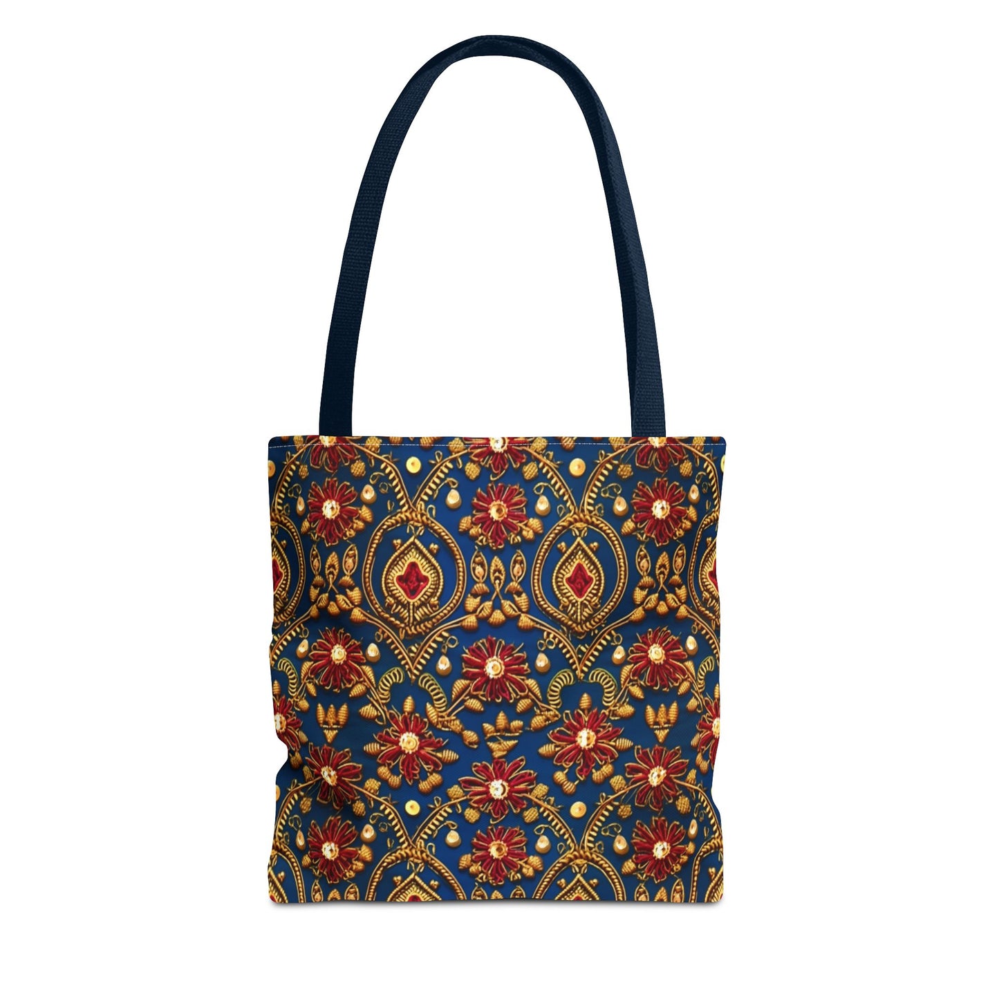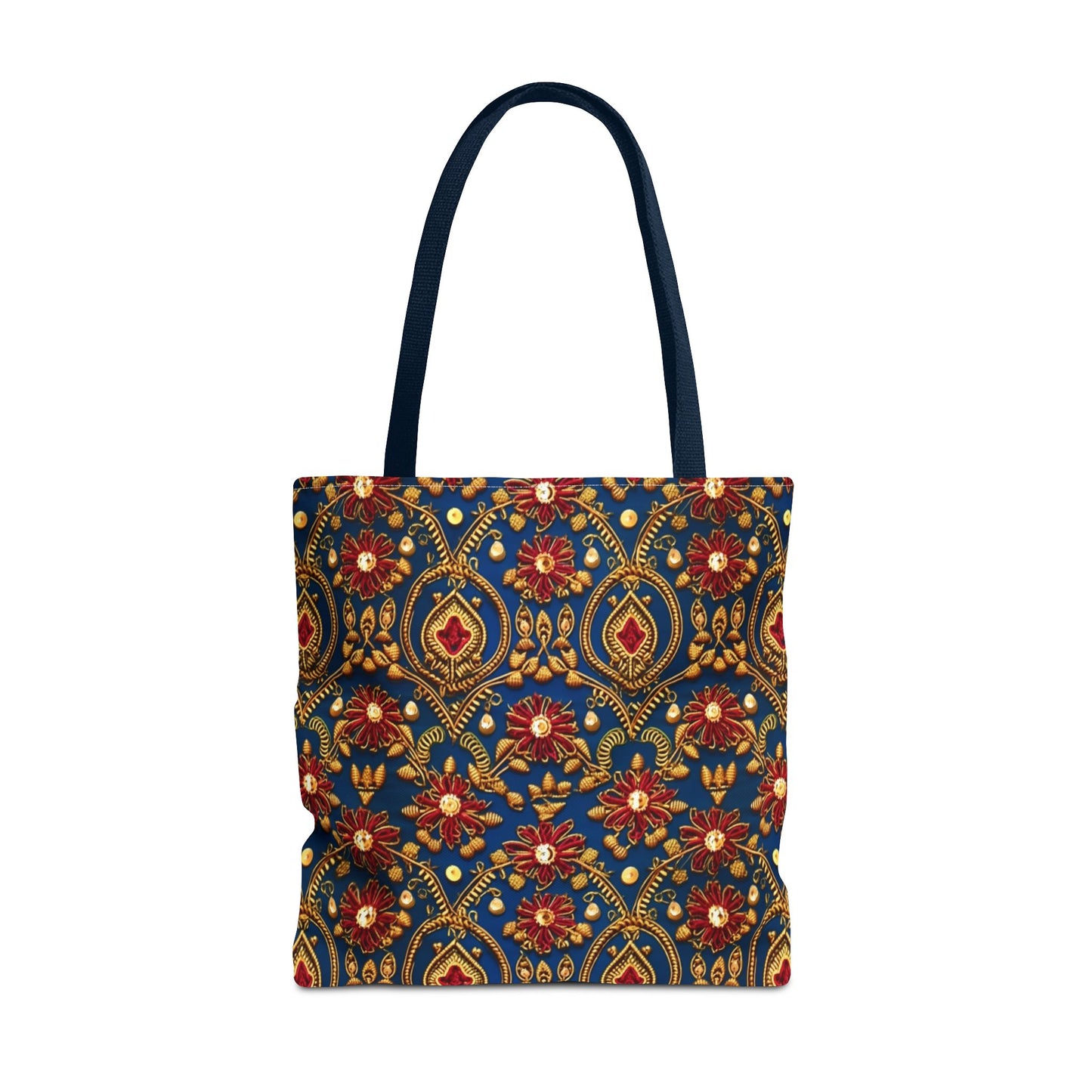 Available in 3 sizes to add both functionality and style, these custom-printed tote bags come with multiple handle colors to match your designs. Made with spun polyester, these bags feature double-stitched seams, cotton webbing straps, and nonwoven laminate lining for high-end durability. Your all-over print is created with dye sublimation for high-end visuals.