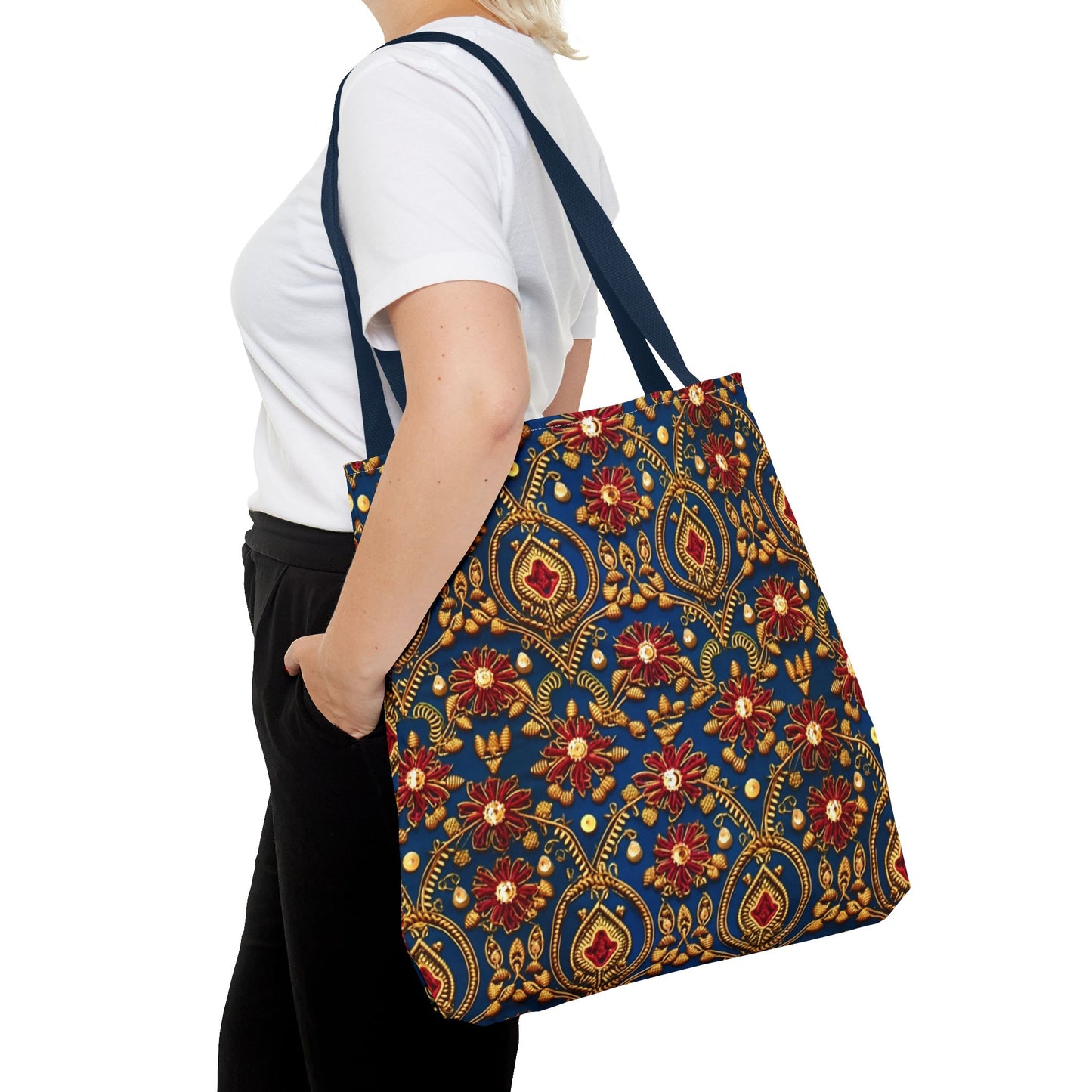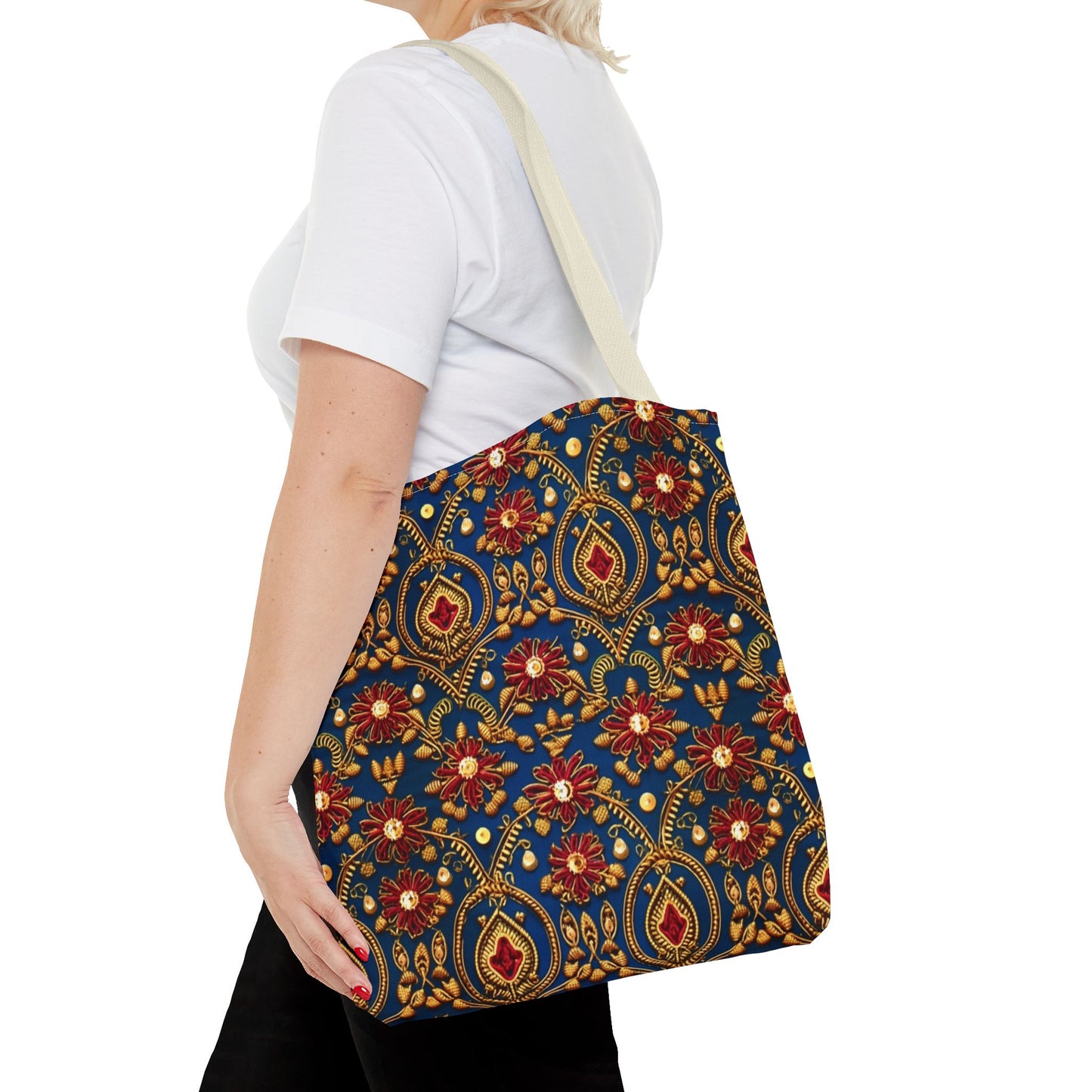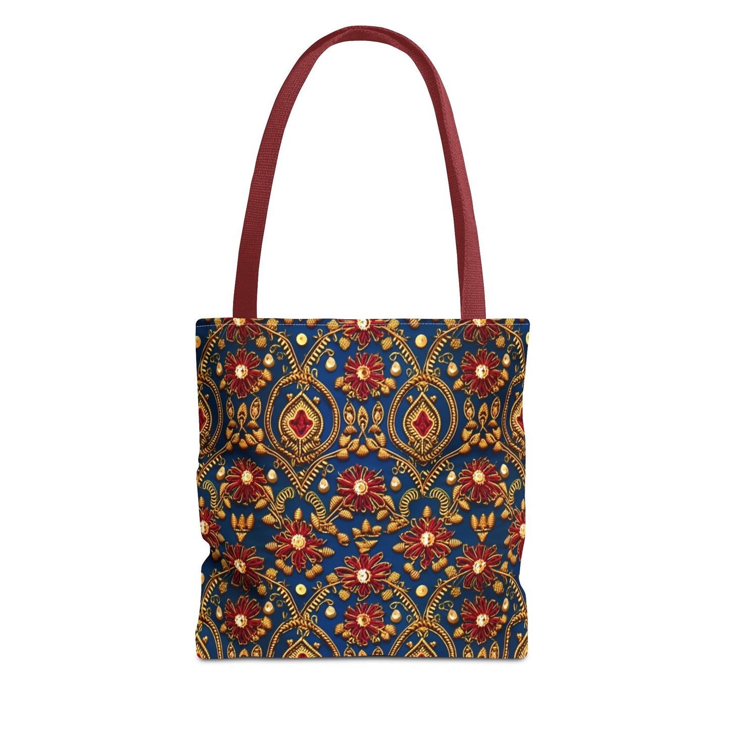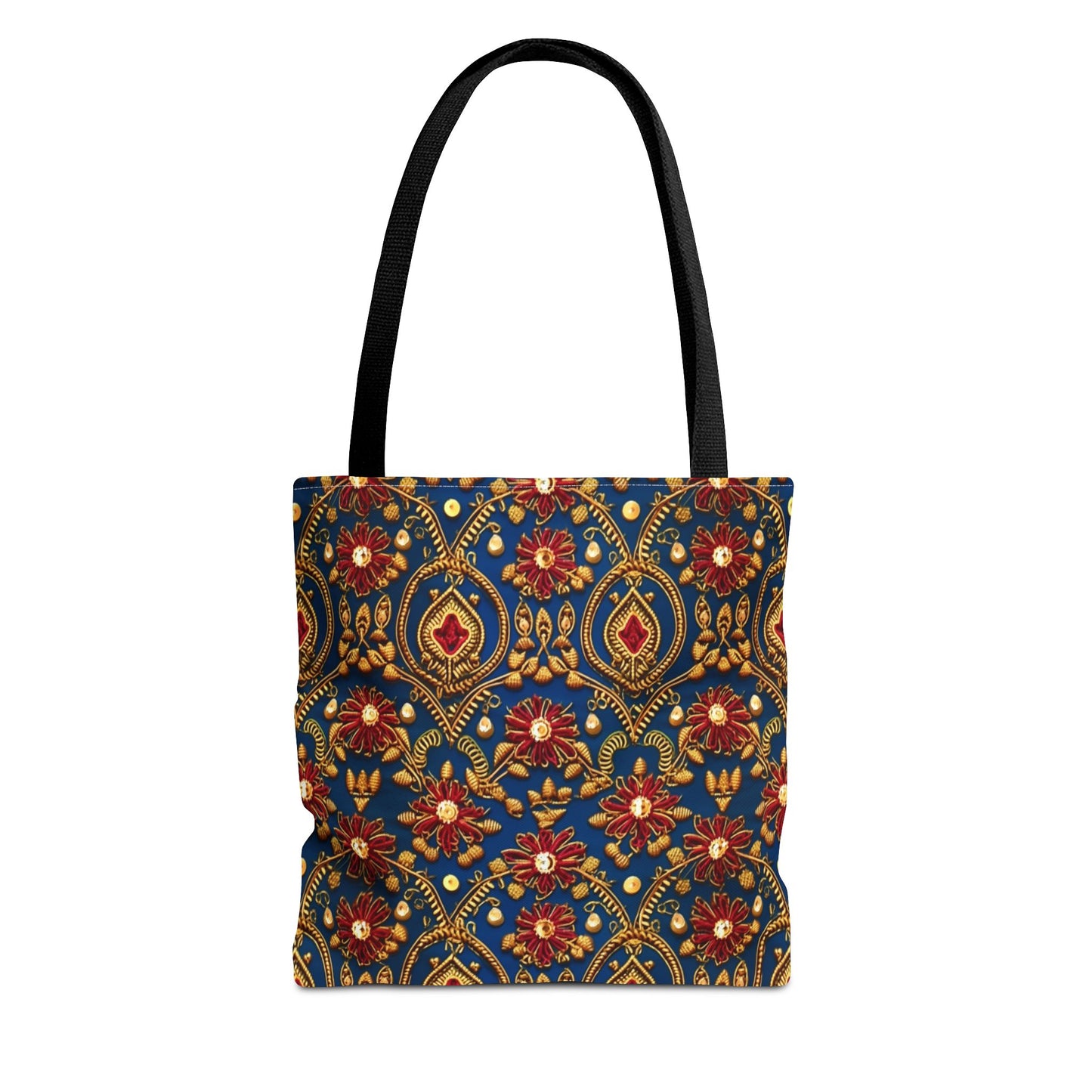 Available in 3 sizes to add both functionality and style, these custom-printed tote bags come with multiple handle colors to match your designs. Made with spun polyester, these bags feature double-stitched seams, cotton webbing straps, and nonwoven laminate lining for high-end durability. Your all-over print is created with dye sublimation for high-end visuals.