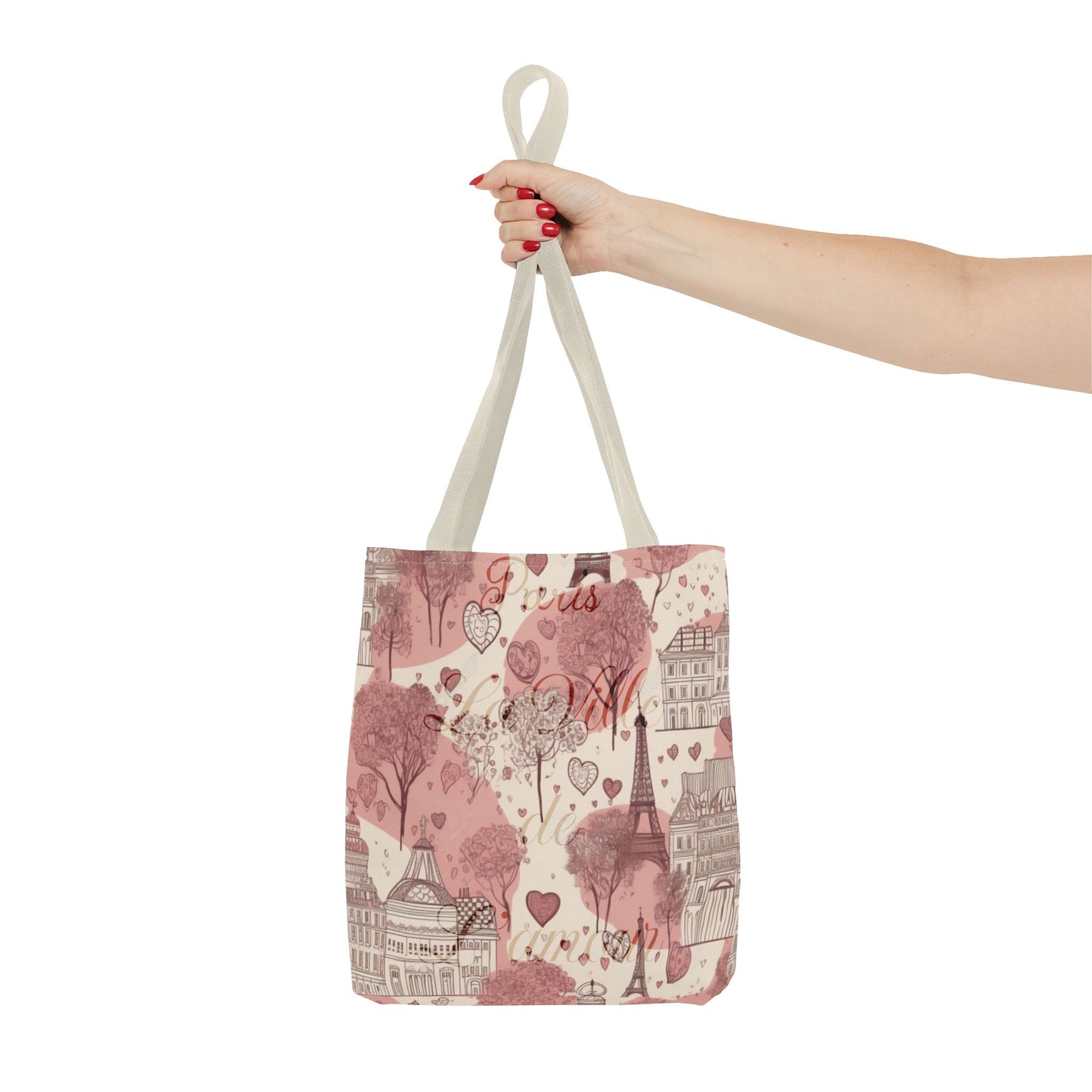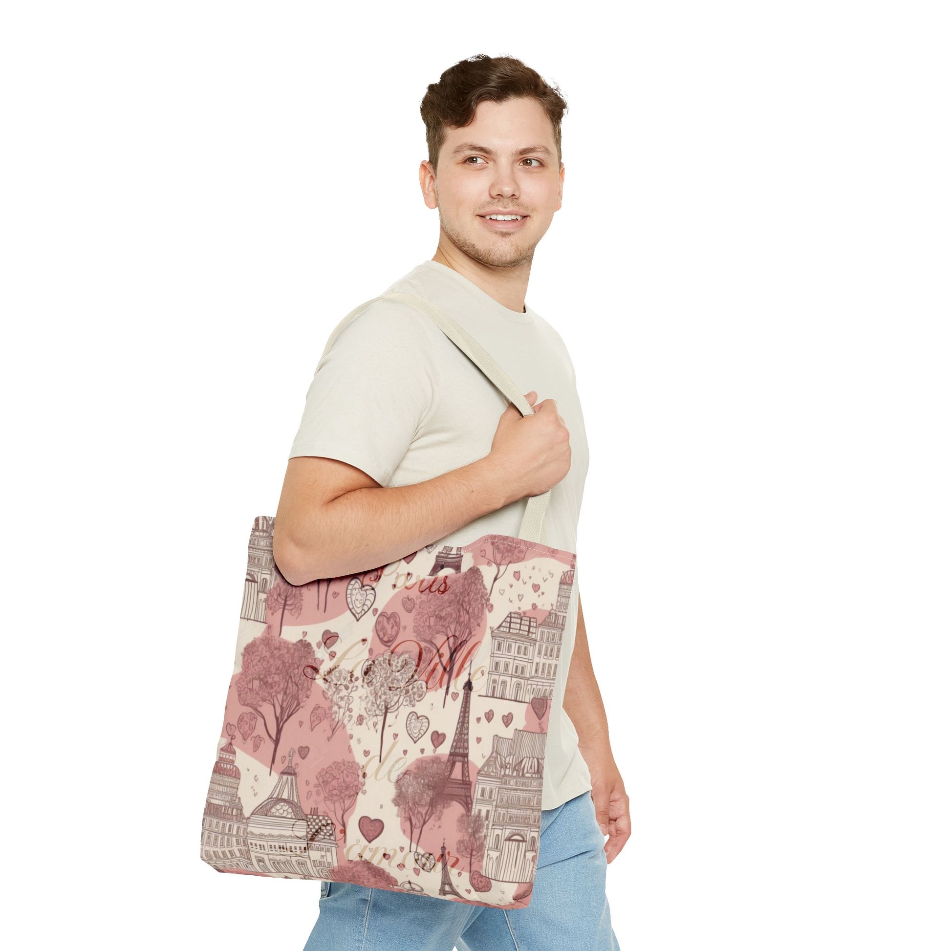 Available in 3 sizes to add both functionality and style, these custom-printed tote bags come with multiple handle colors to match your designs. Made with spun polyester, these bags feature double-stitched seams, cotton webbing straps, and nonwoven laminate lining for high-end durability. Your all-over print is created with dye sublimation for high-end visuals.