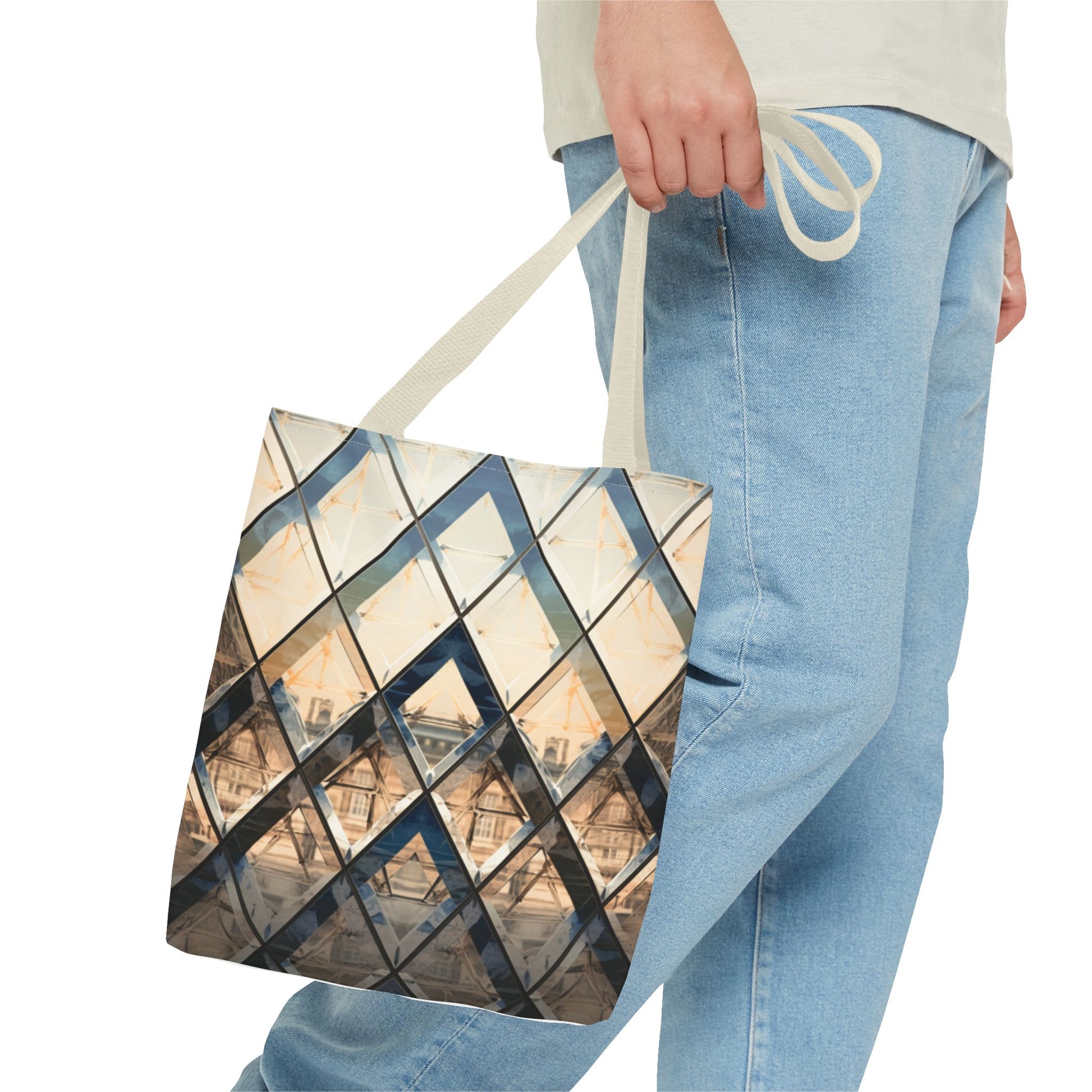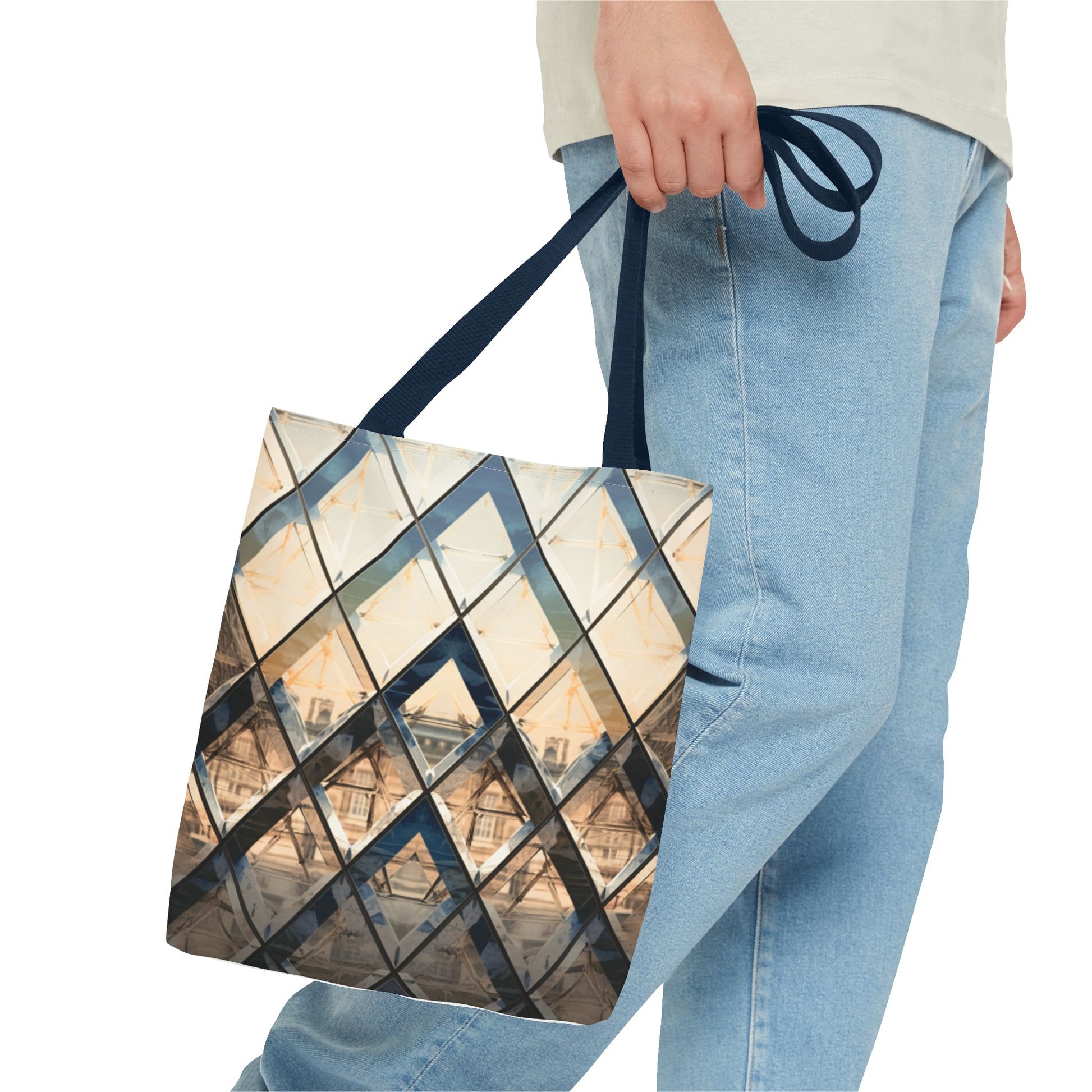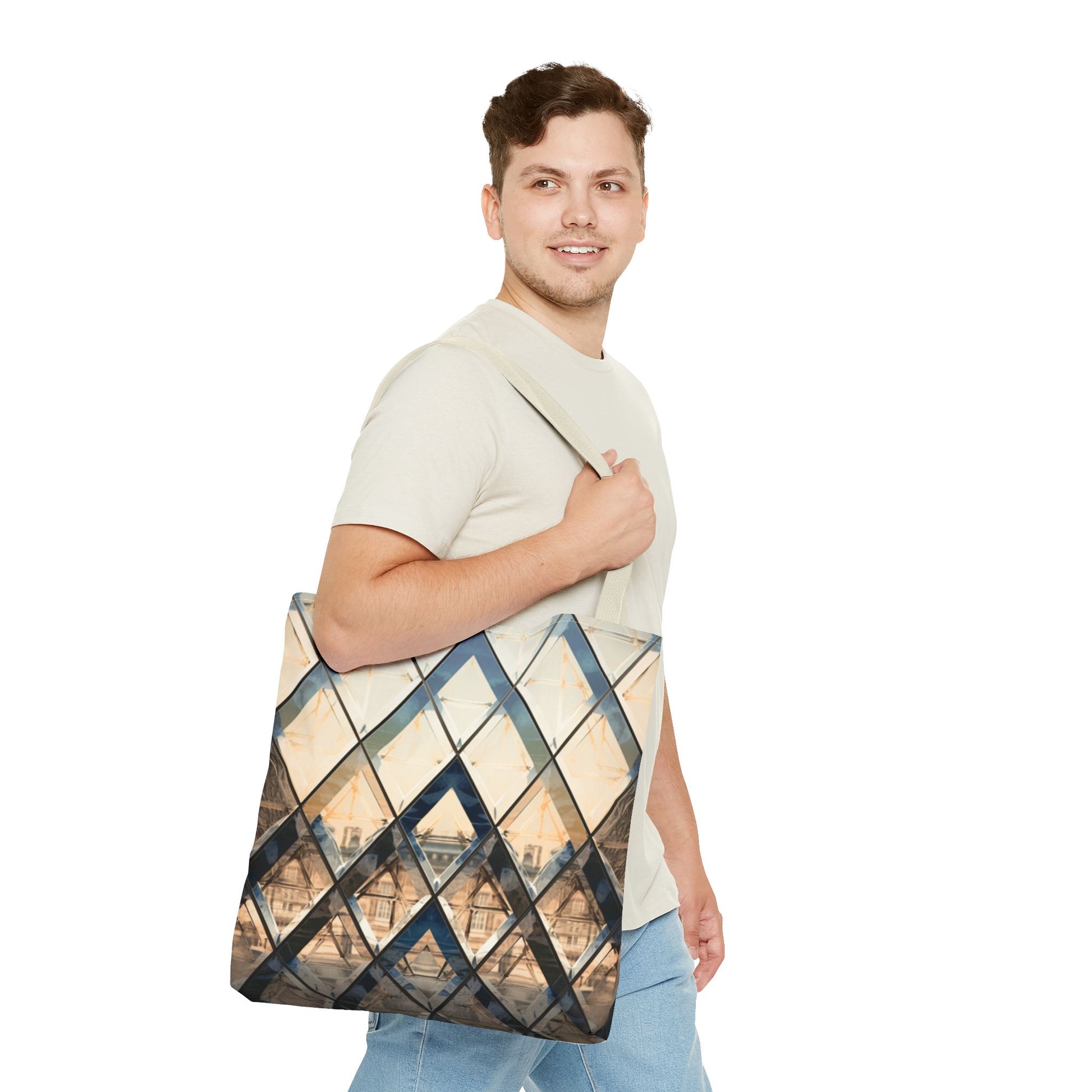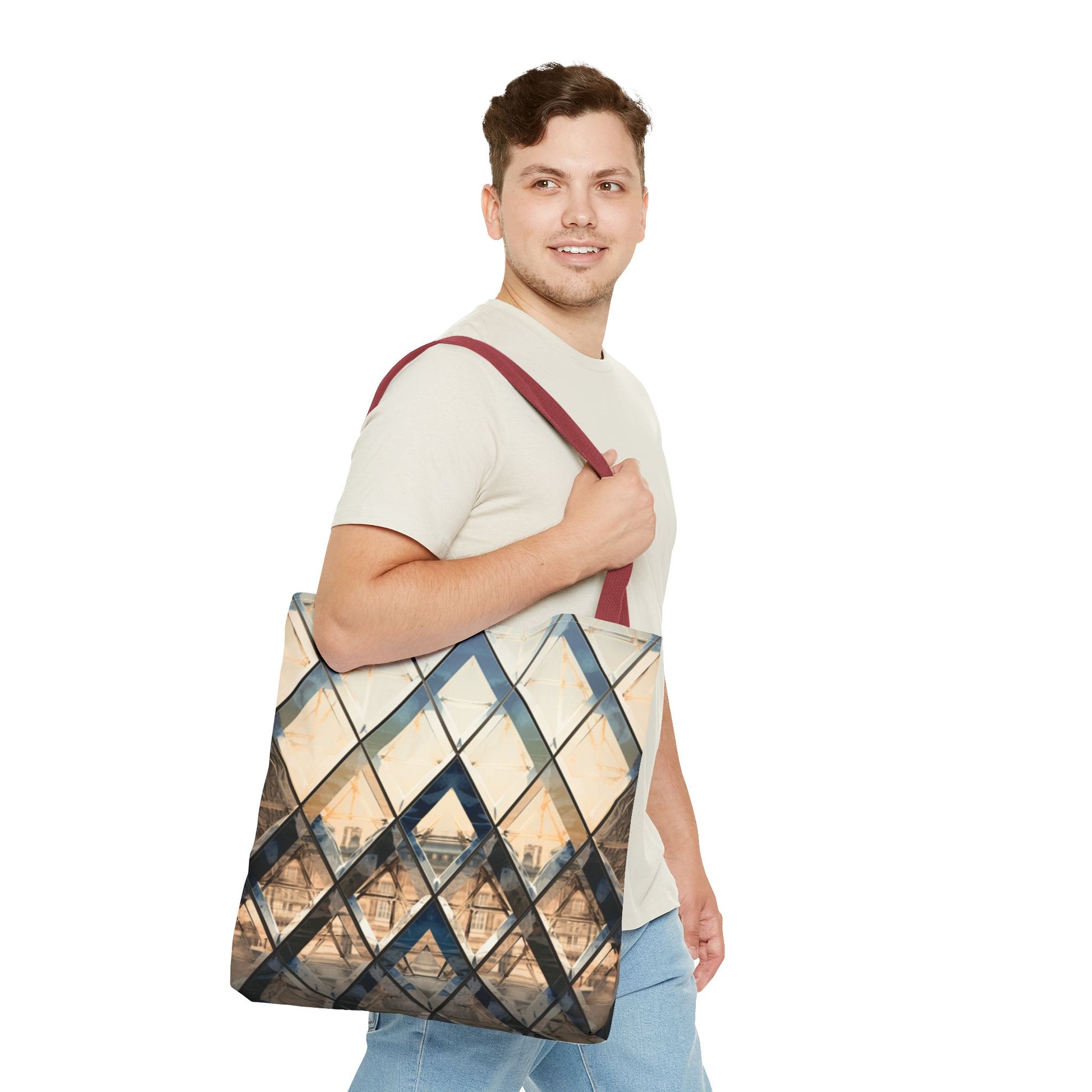 Available in 3 sizes to add both functionality and style, these custom-printed tote bags come with multiple handle colors to match your designs. Made with spun polyester, these bags feature double-stitched seams, cotton webbing straps, and nonwoven laminate lining for high-end durability. Your all-over print is created with dye sublimation for high-end visuals.