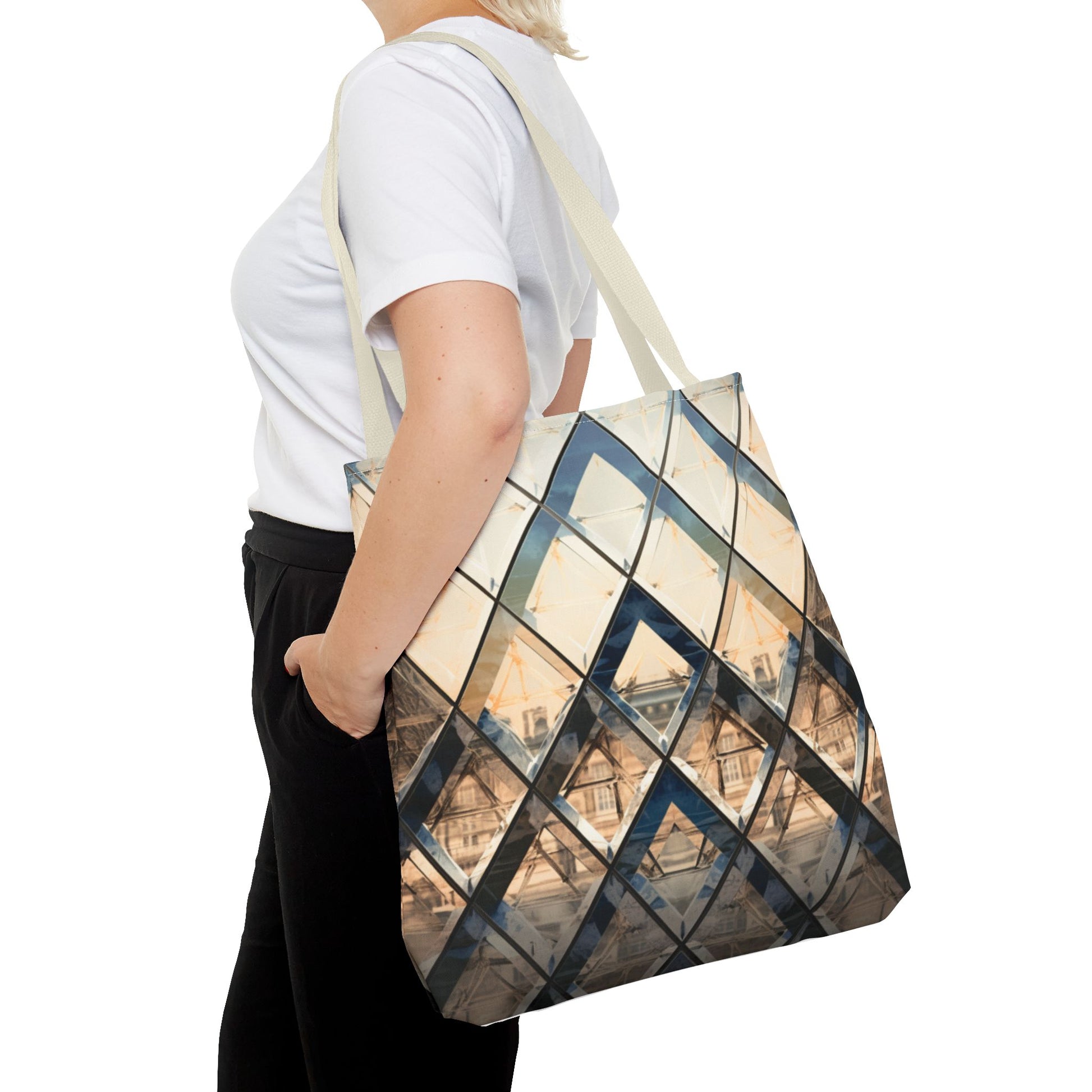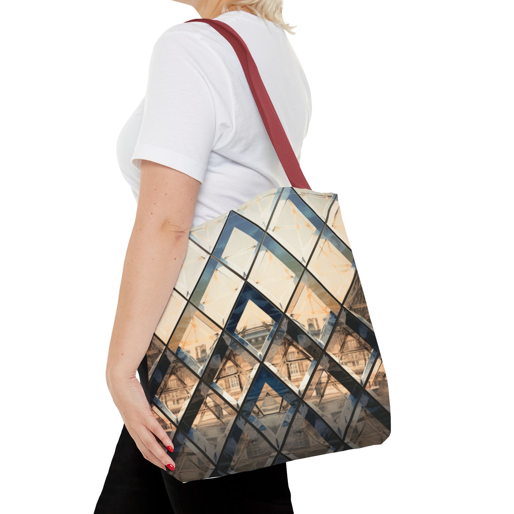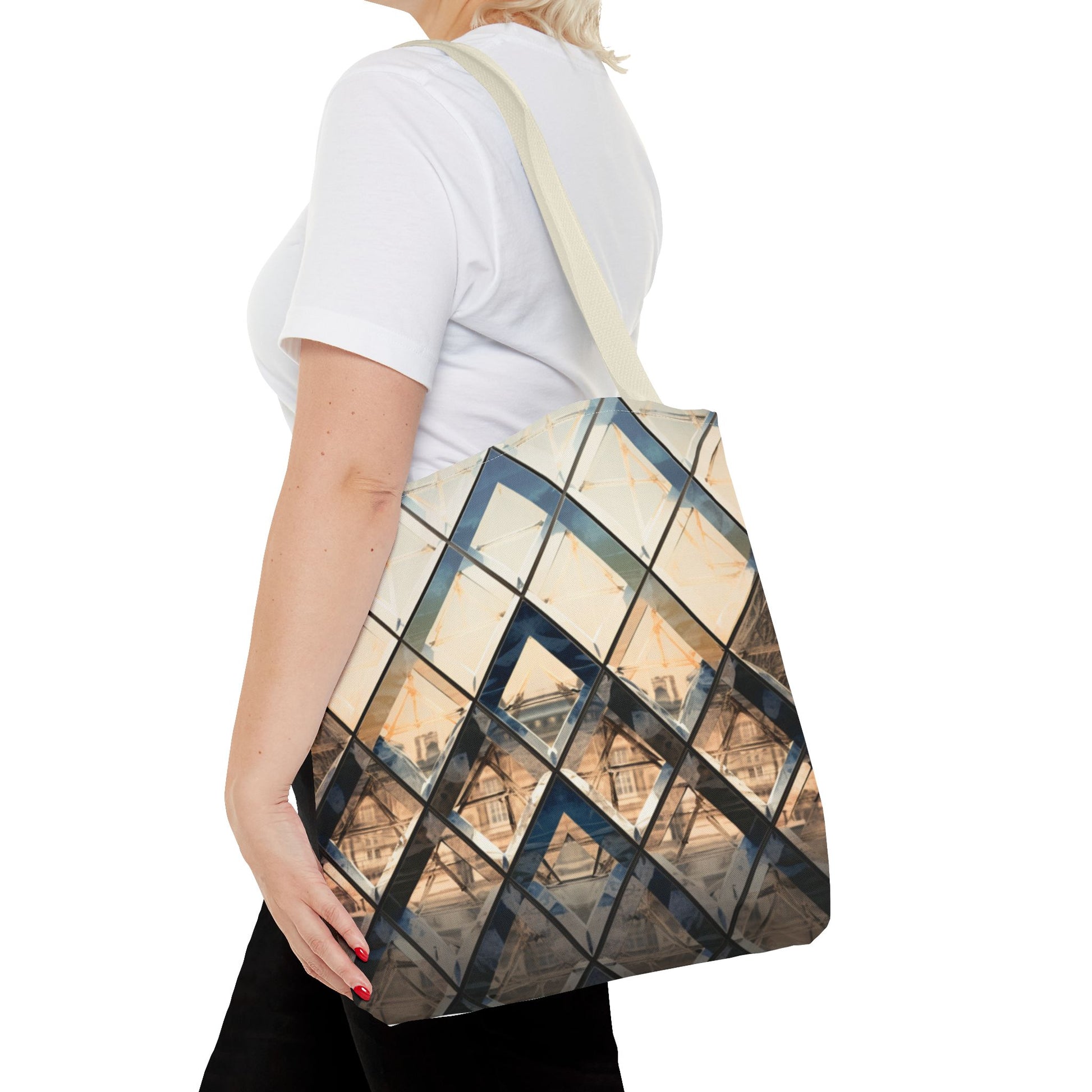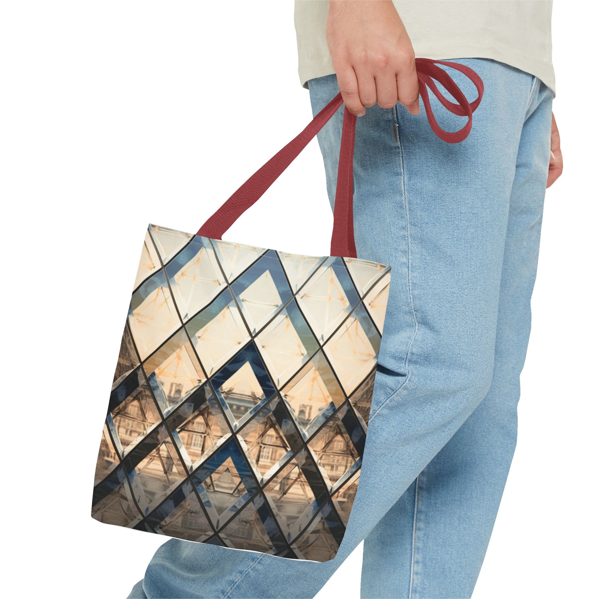 Available in 3 sizes to add both functionality and style, these custom-printed tote bags come with multiple handle colors to match your designs. Made with spun polyester, these bags feature double-stitched seams, cotton webbing straps, and nonwoven laminate lining for high-end durability. Your all-over print is created with dye sublimation for high-end visuals.
