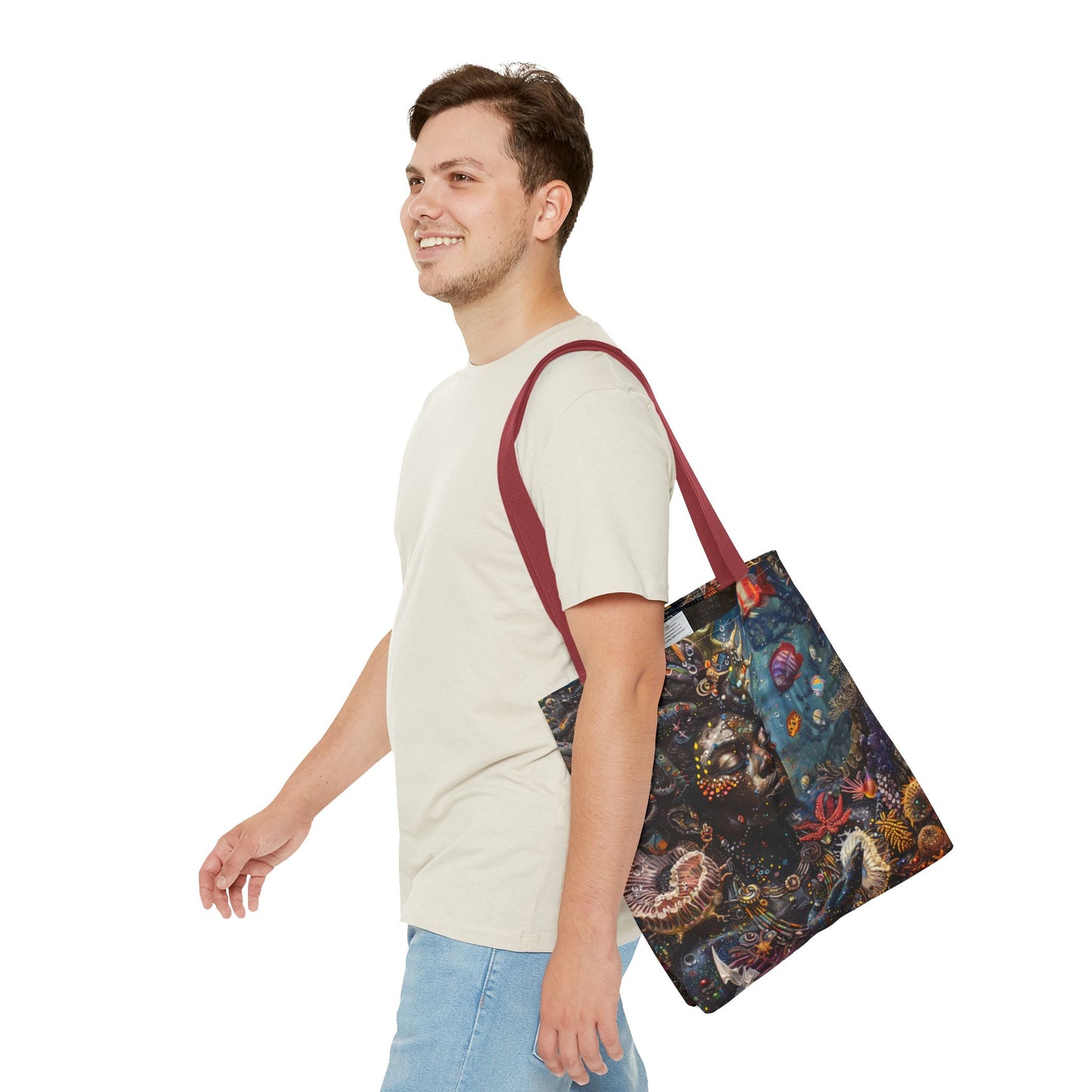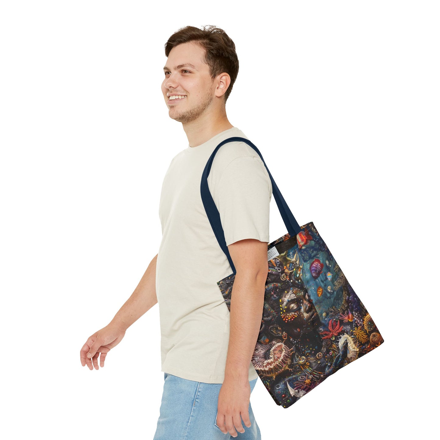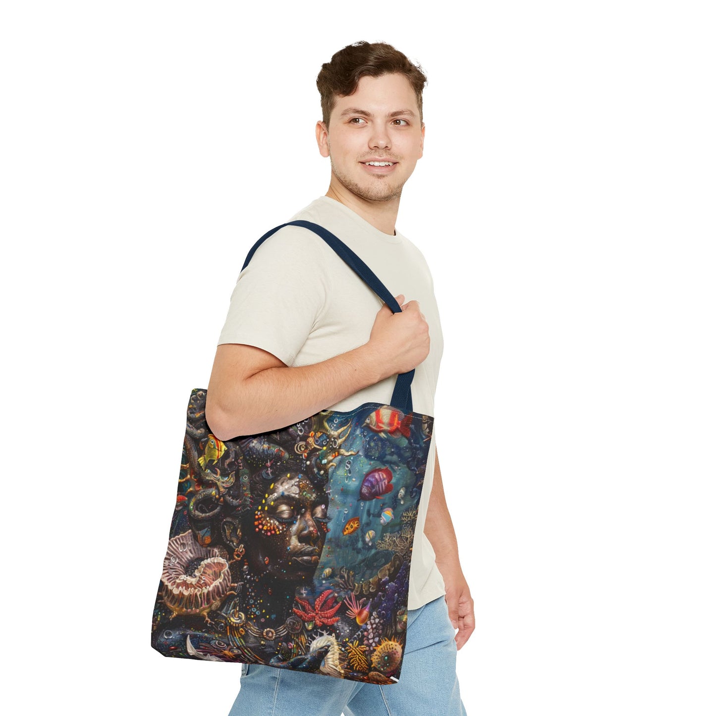 Available in three sizes to add both functionality and style, these custom tote bags come with various handle colors. Made from spun polyester, these bags feature double-stitched seams, cotton webbing handles, and a non-woven laminate lining for extended durability. The prints on the bags are achieved through dye sublimation for high-quality visual results.