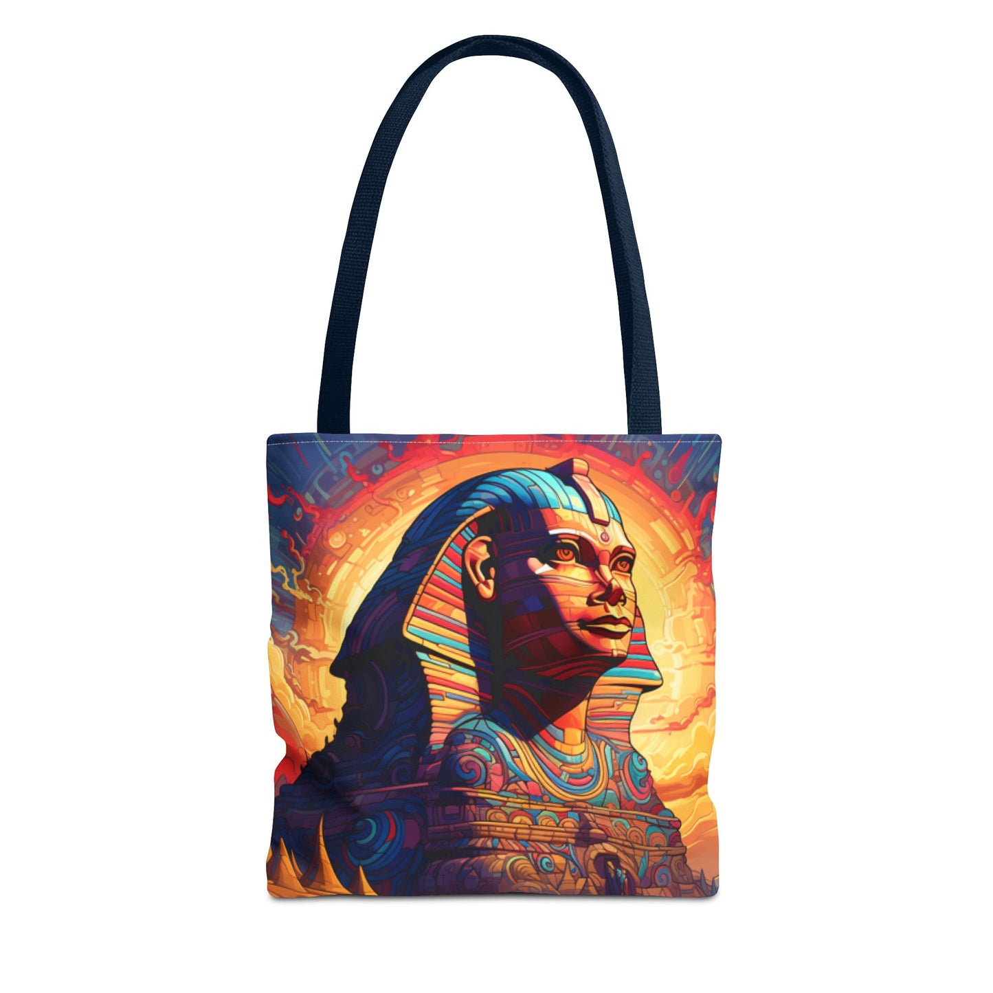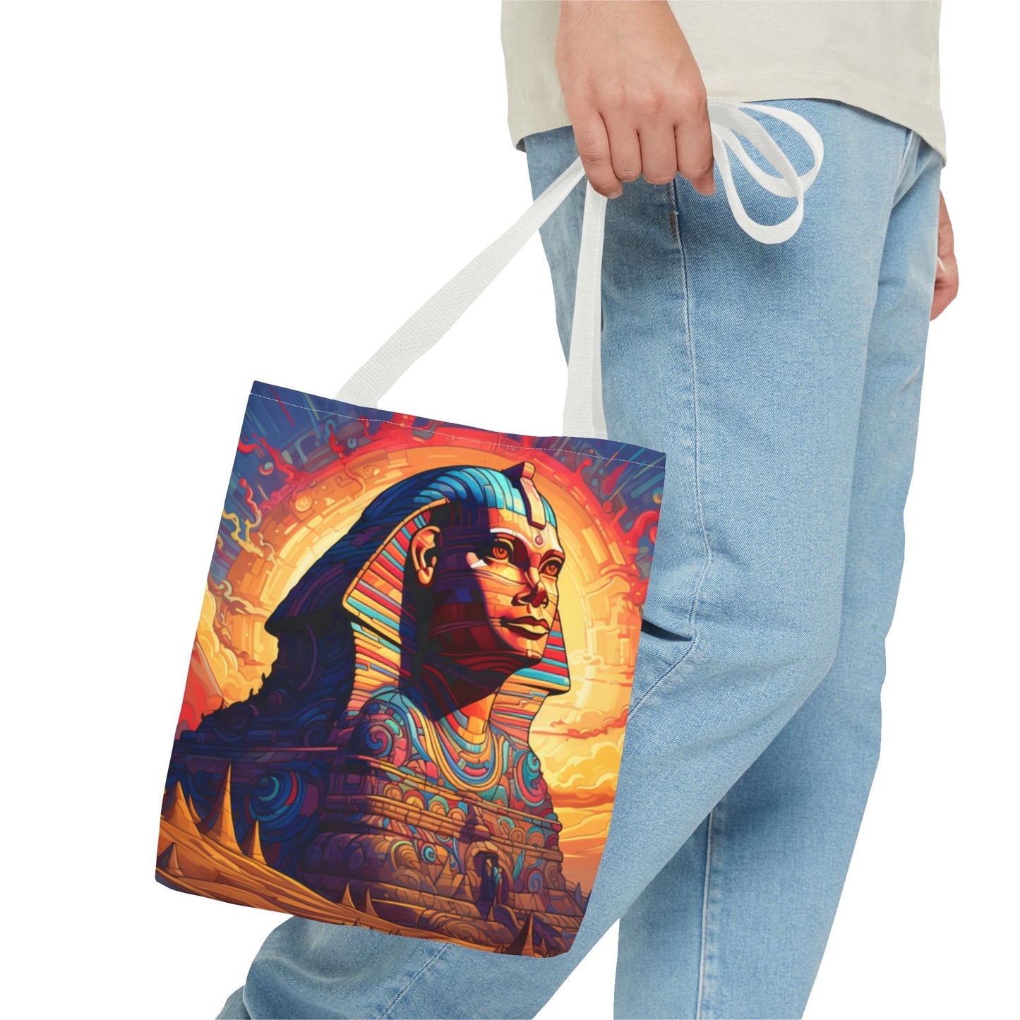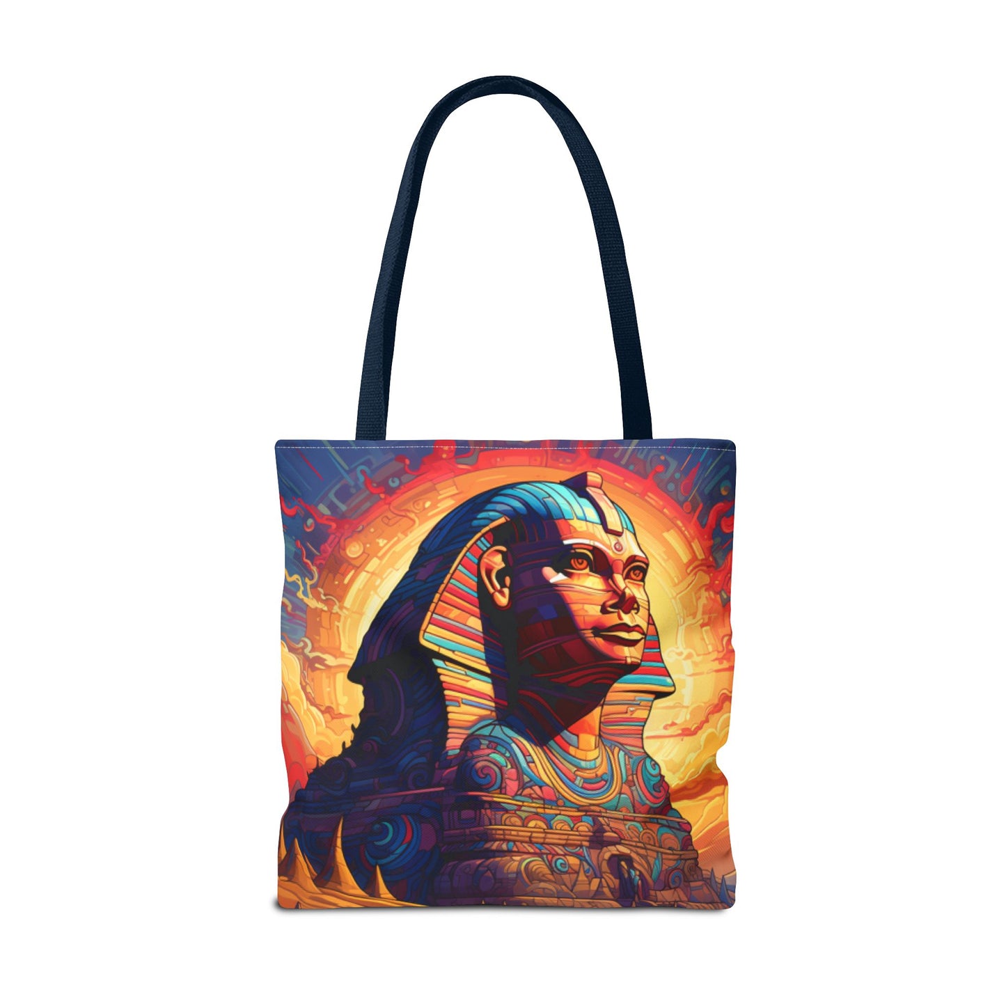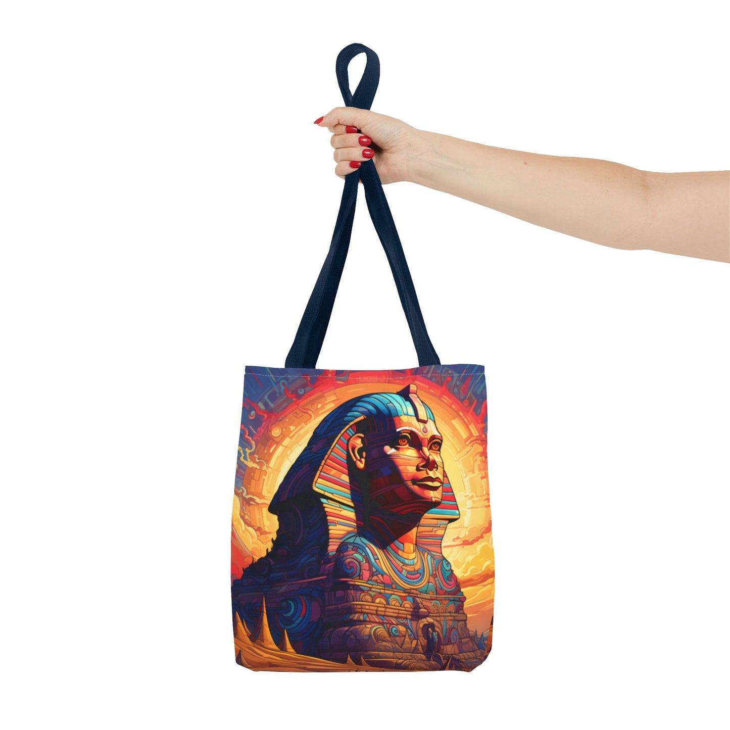 Available in three sizes to add both functionality and style, these custom tote bags come with various handle colors. Made from spun polyester, these bags feature double-stitched seams, cotton webbing handles, and a non-woven laminate lining for extended durability. The prints on the bags are achieved through dye sublimation for high-quality visual results.