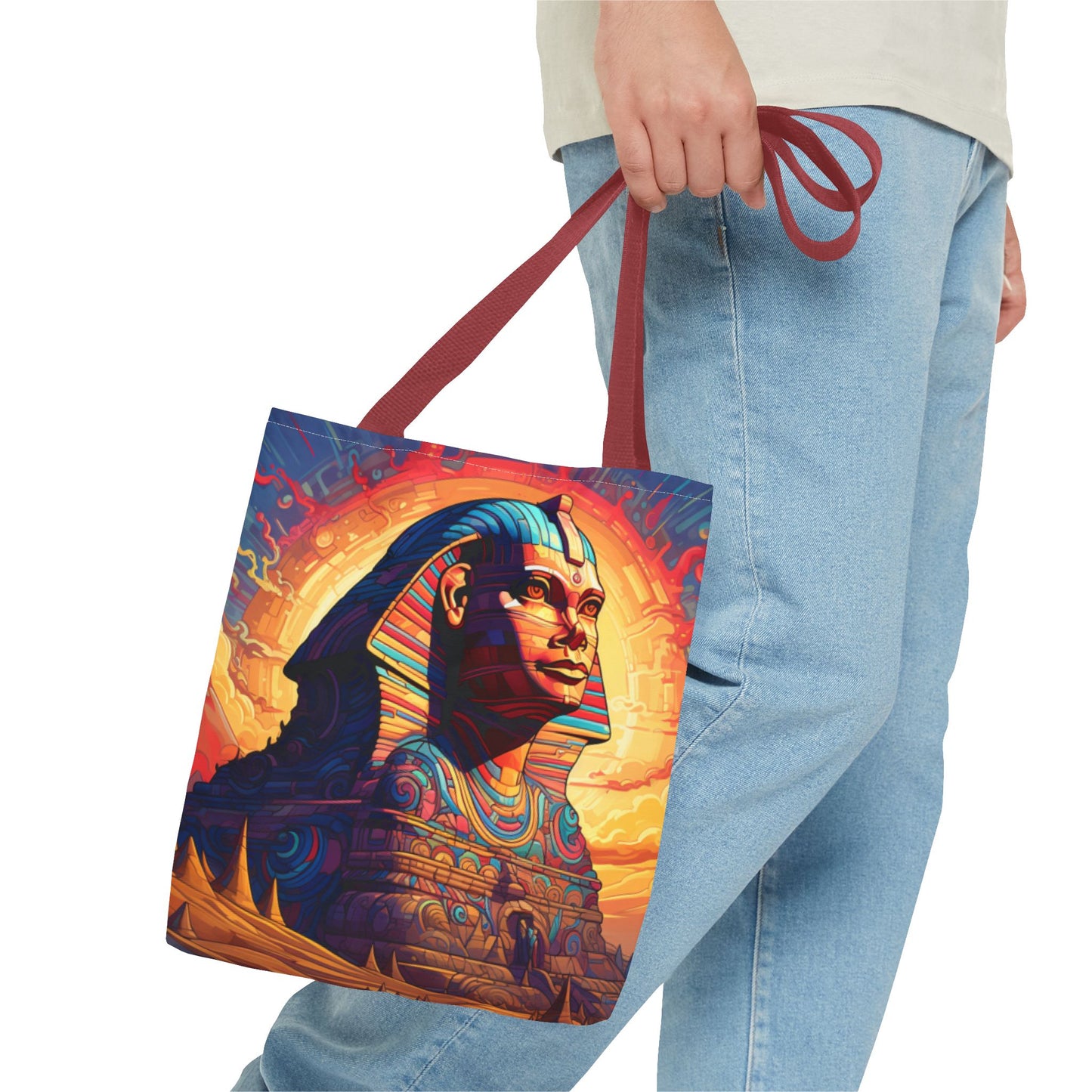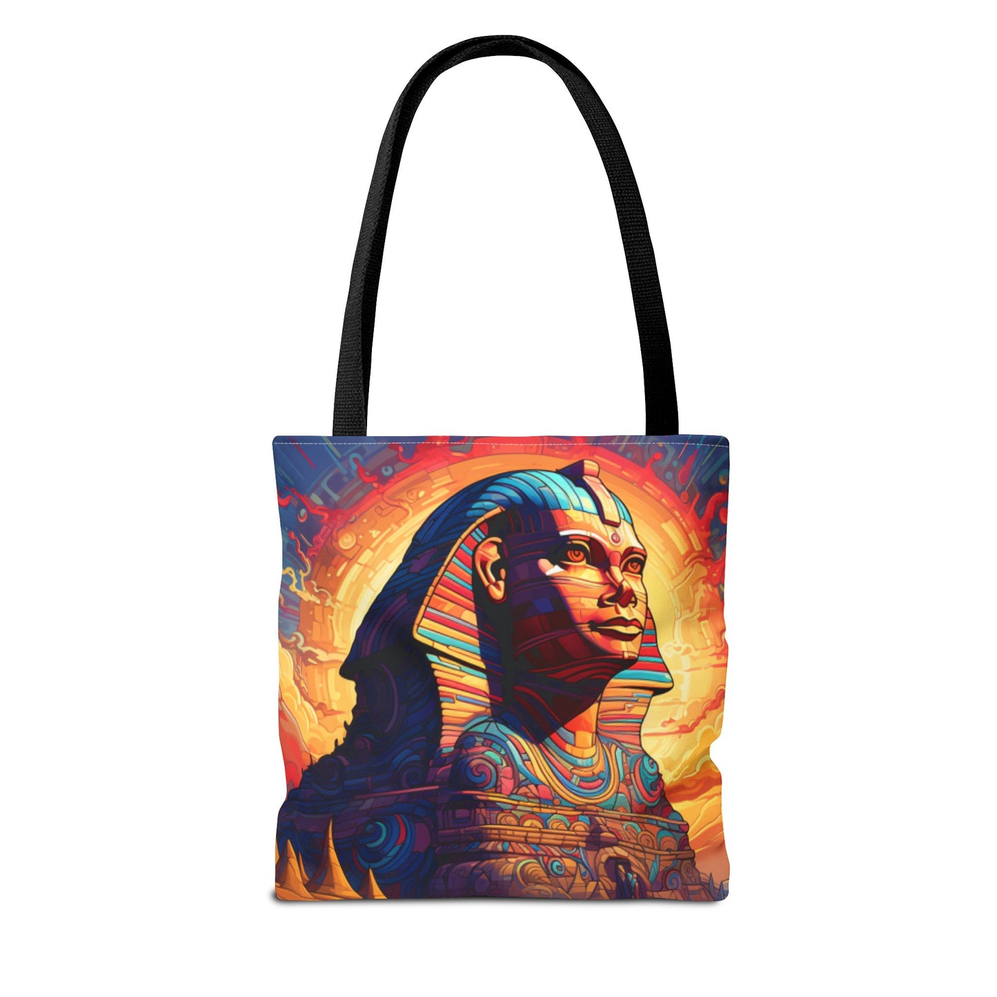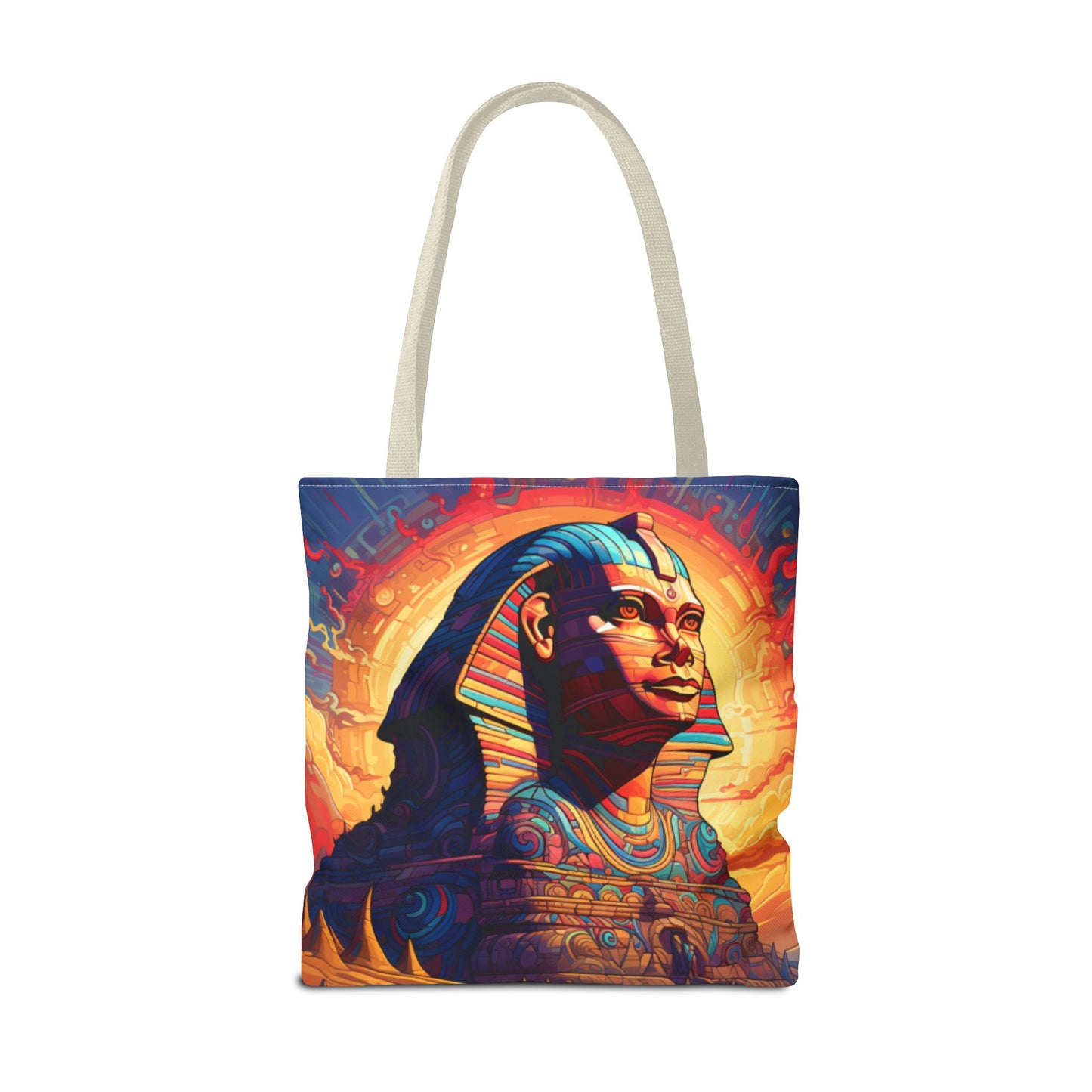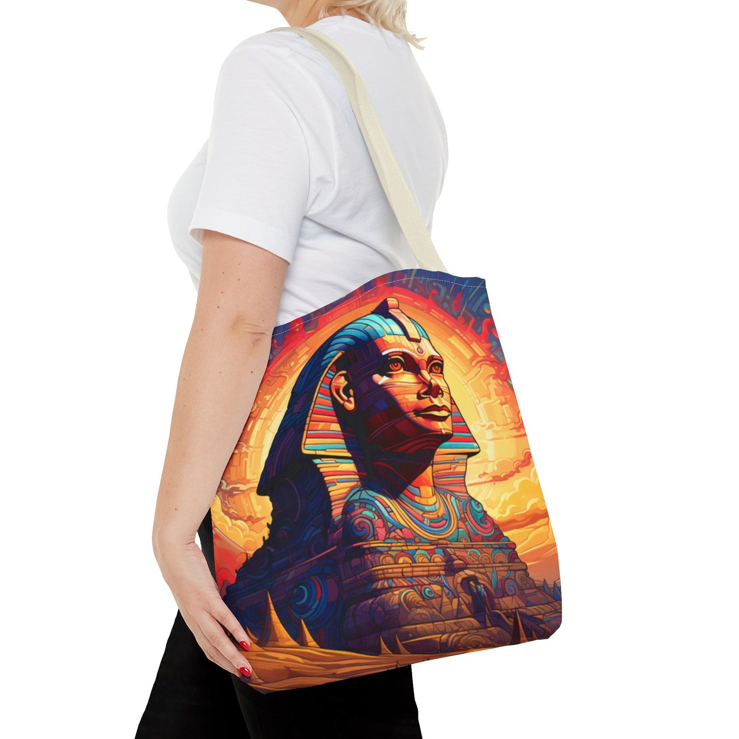 Available in three sizes to add both functionality and style, these custom tote bags come with various handle colors. Made from spun polyester, these bags feature double-stitched seams, cotton webbing handles, and a non-woven laminate lining for extended durability. The prints on the bags are achieved through dye sublimation for high-quality visual results.