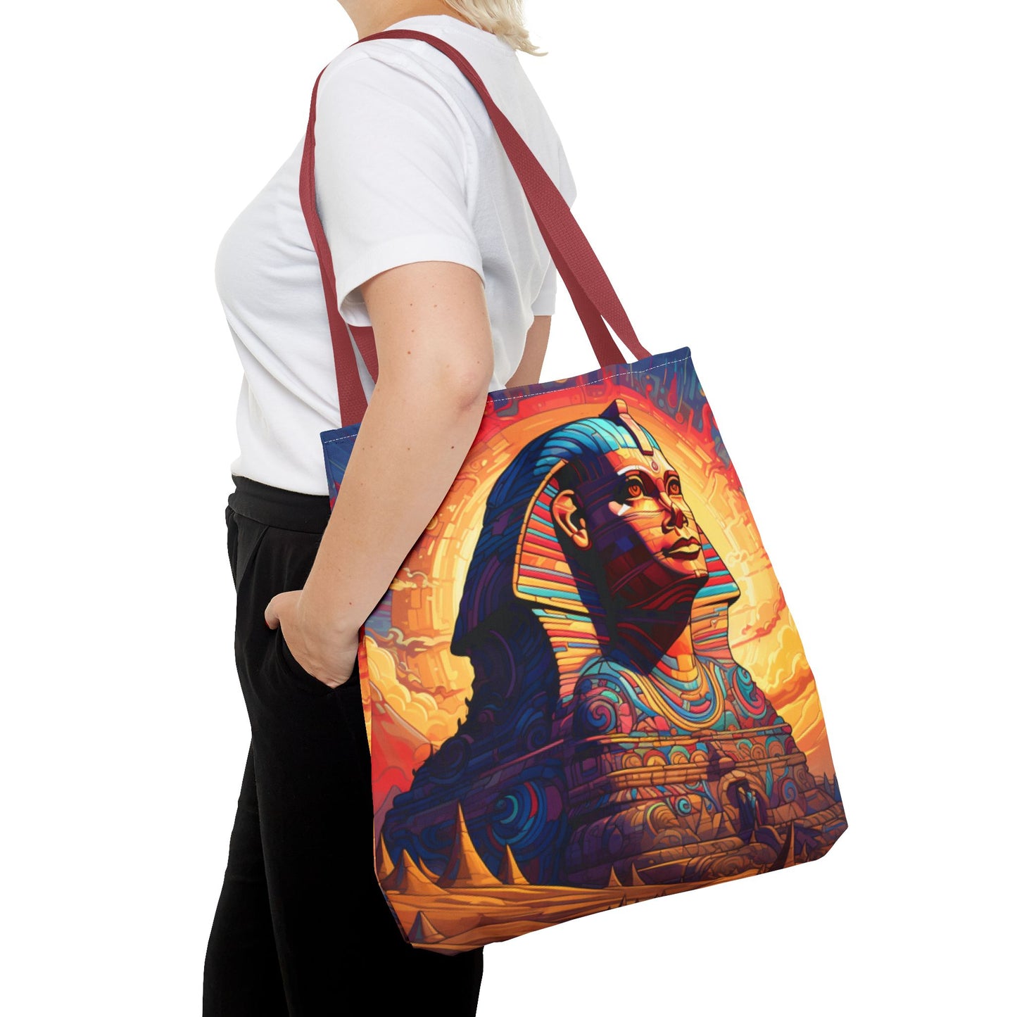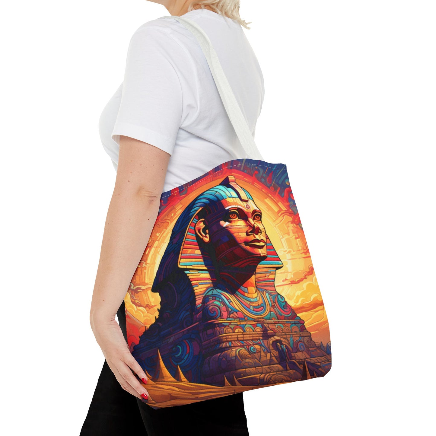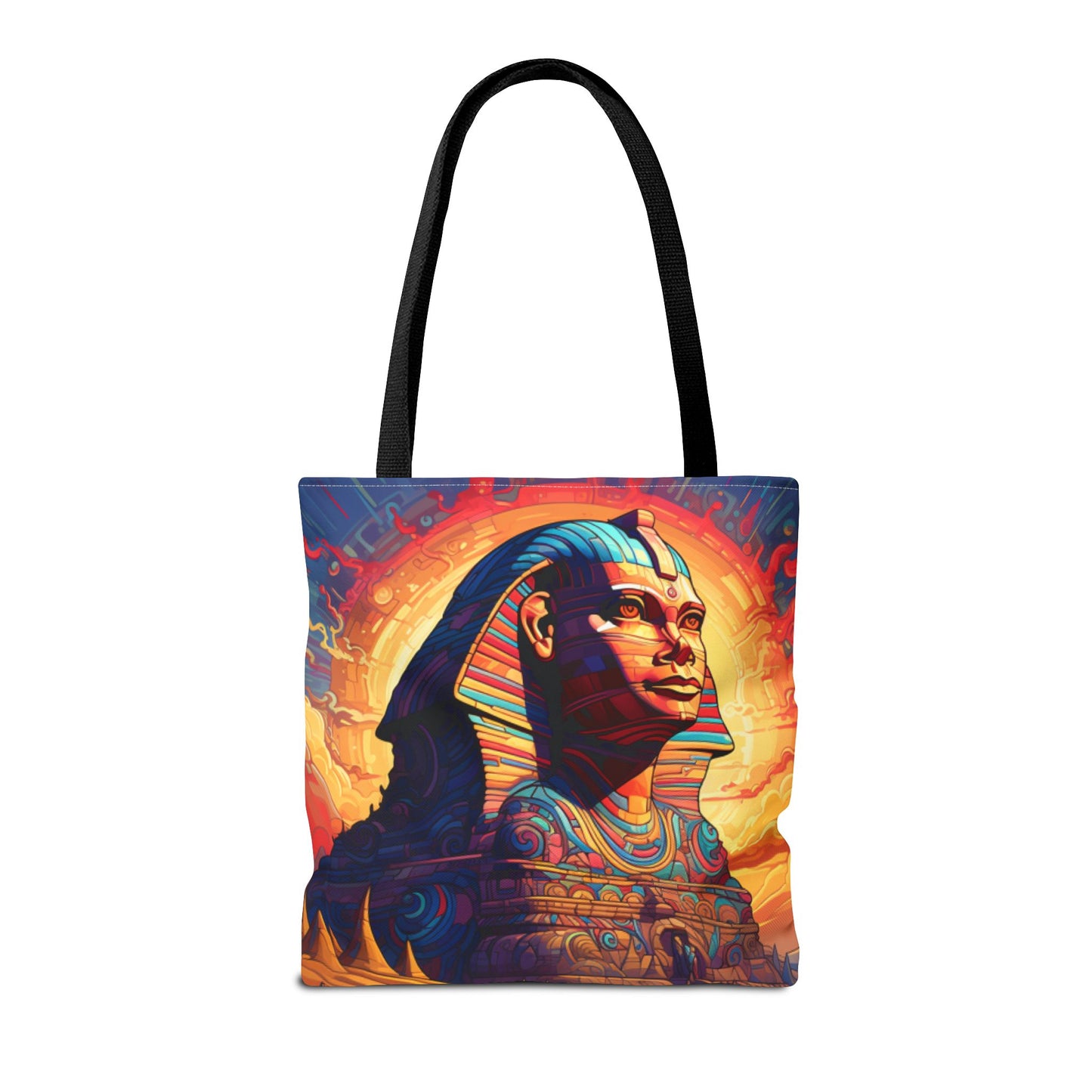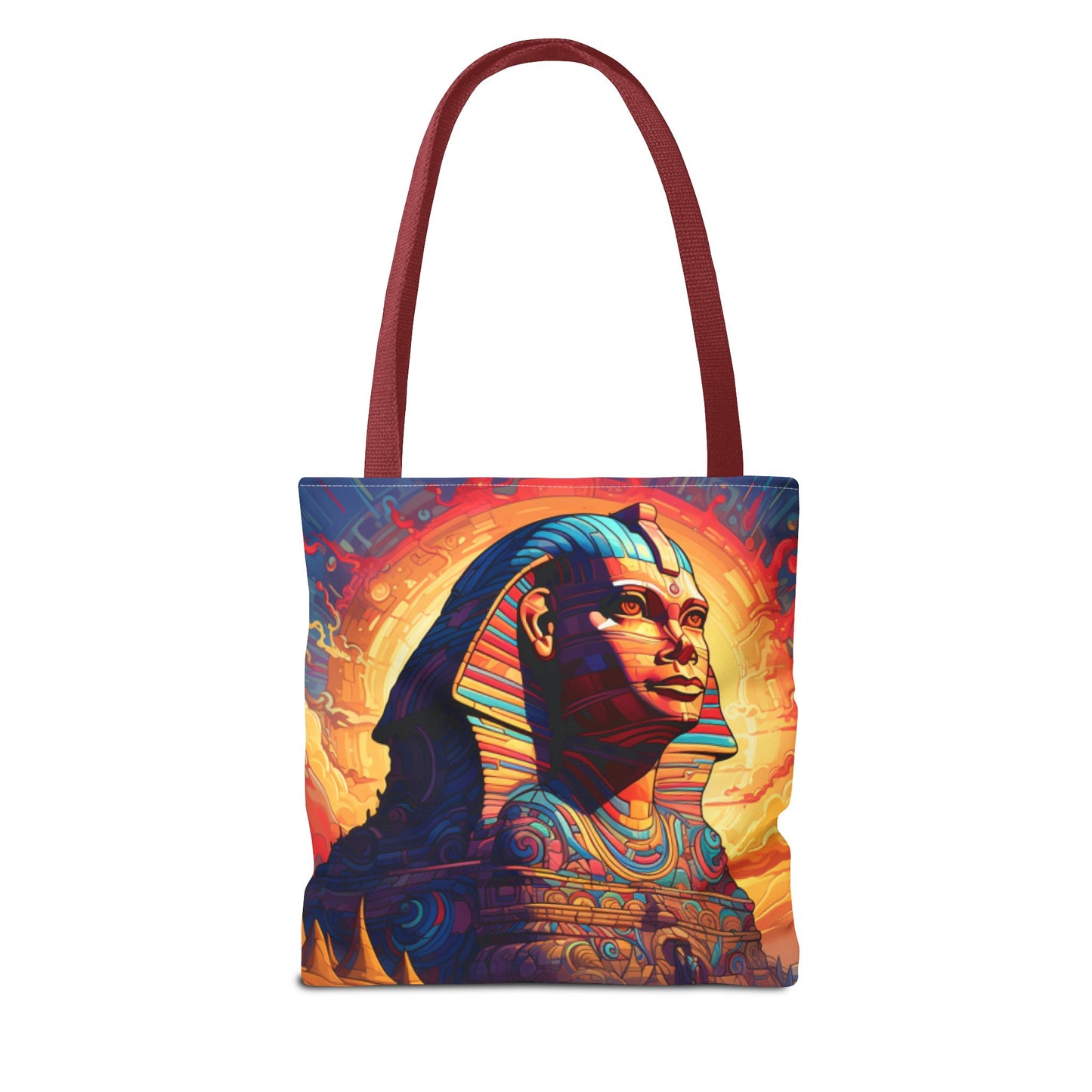 Available in three sizes to add both functionality and style, these custom tote bags come with various handle colors. Made from spun polyester, these bags feature double-stitched seams, cotton webbing handles, and a non-woven laminate lining for extended durability. The prints on the bags are achieved through dye sublimation for high-quality visual results.